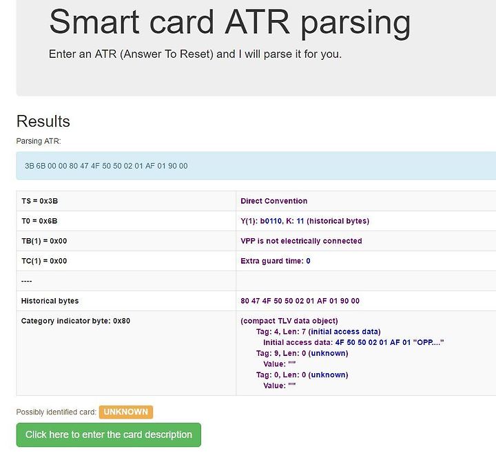 Card ATR을 입력하면 이렇게 뜬다.